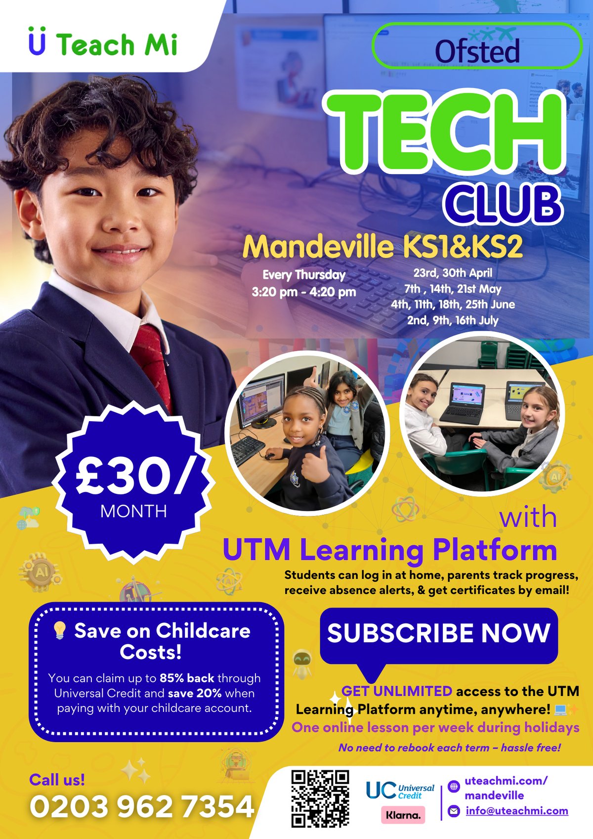 This is not just a one-hour club. U Teach Mi combines in-person learning with an interactive platform, so children continue developing skills beyond the classroom — building real competence over weeks and months.